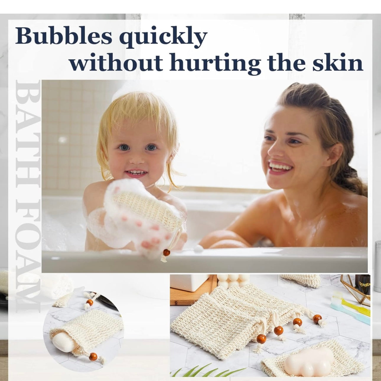 100% Natural Sisal Soap Pouch, Mesh Exfoliating Soap Savers for Shower Use Like Massaging And Scrubbing