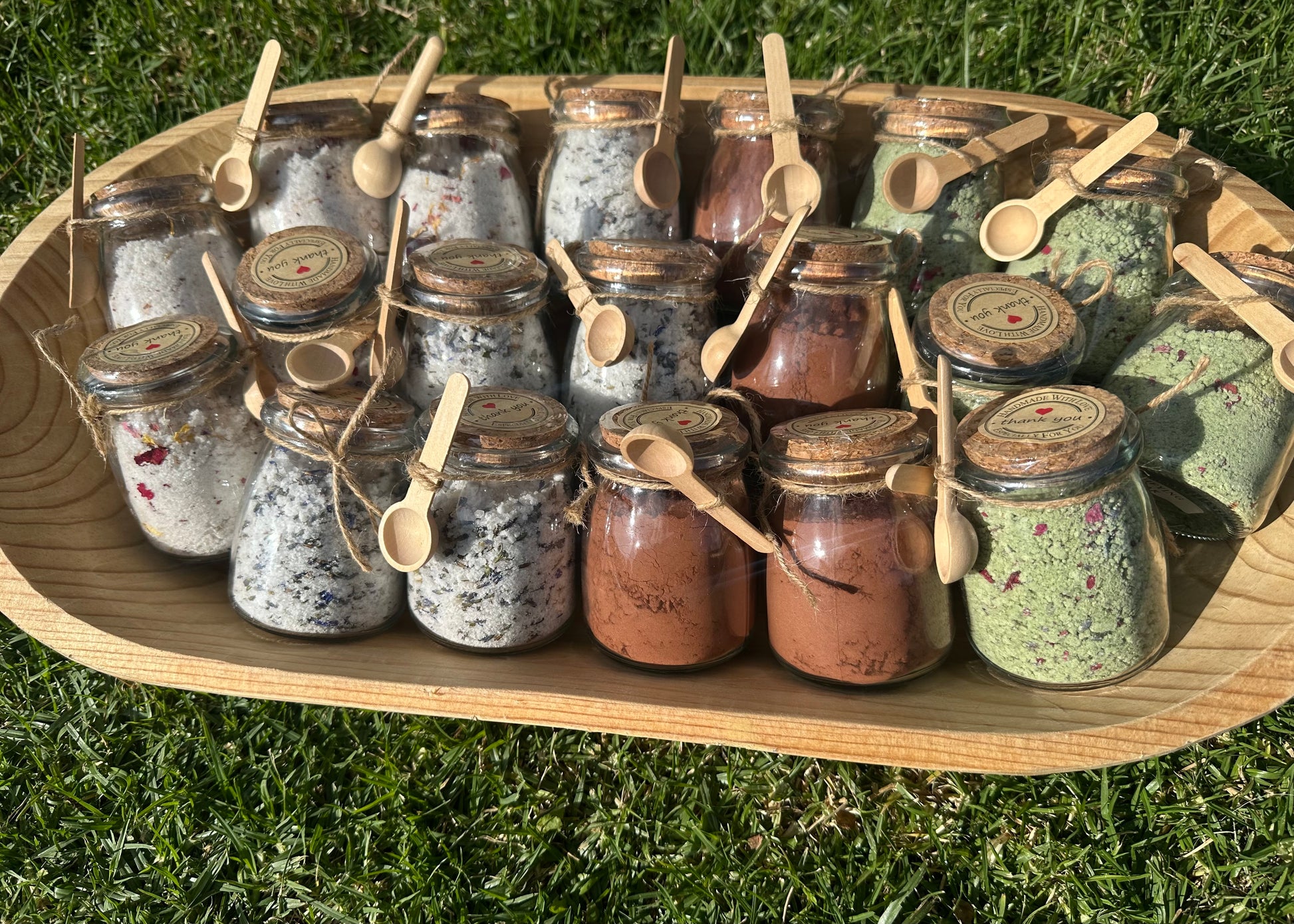 Please keep in mind that all our bath salts are infused with natural essential oils, so sometimes the scent will be softer or lighter than chemically fragranced bath salts.Due to the handmade nature of my products, note that none will be identical. Please allow slight variations from photos.